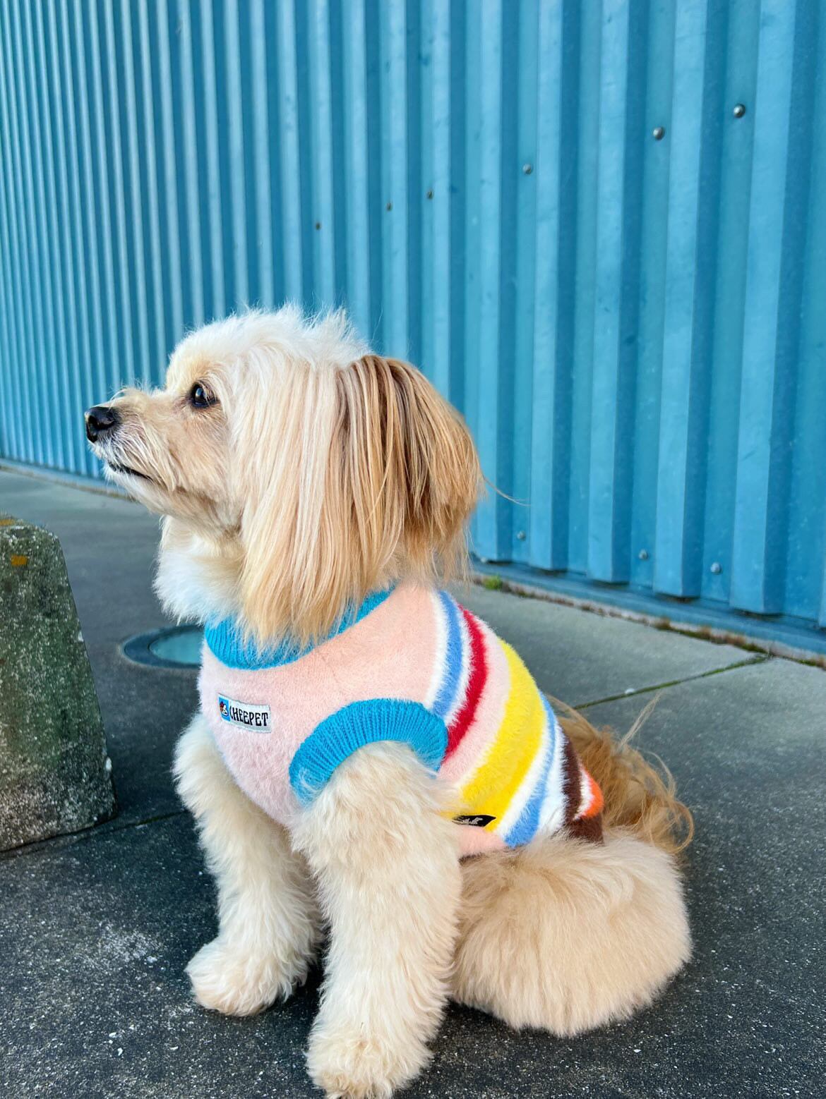鮮やかなカラーと落ちついたカラーがミックスされたニットです