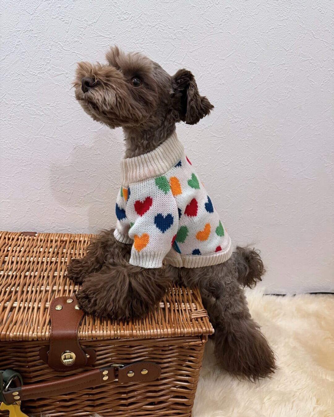 カラフルなハートが散りばめられたニットはカジュアルに可愛く着れます♡